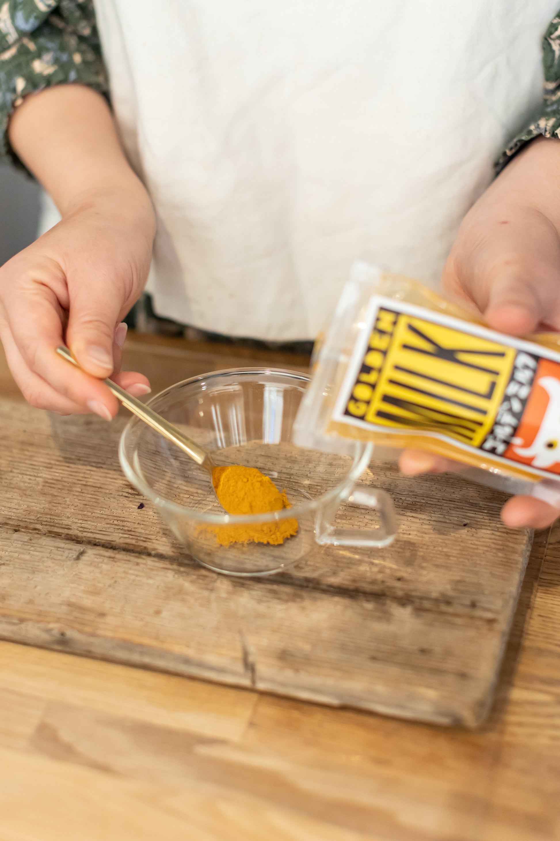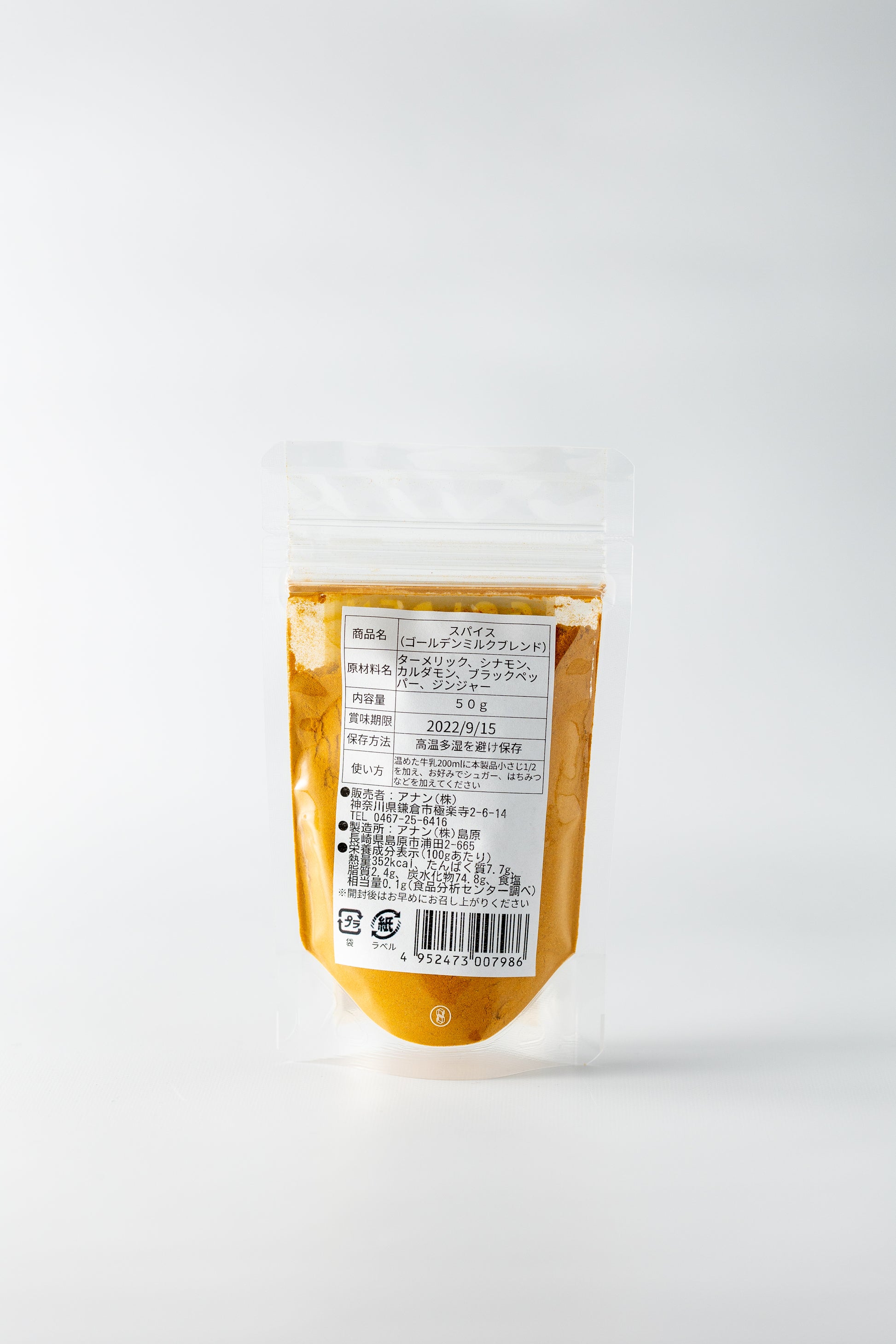 鎌倉アナンスパイスのゴールデンミルク。インドで一般的なドリンクでターメリックをメインスパイスとしてジンジャーやカルダモンをブレンド。インドでは健康に良い飲み物として、小さい子供から大人までがこのゴールデンミルクをよく飲んでいます。