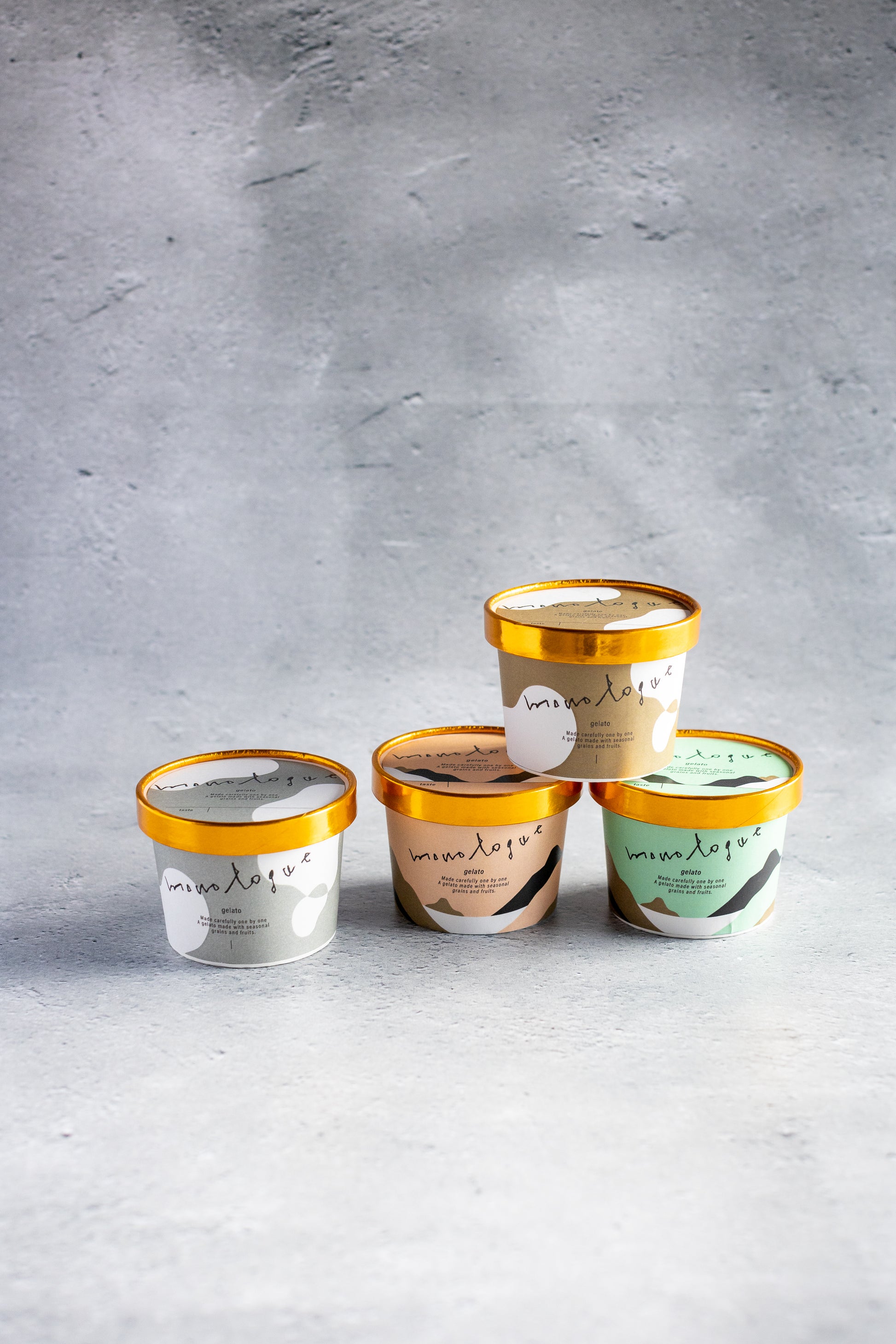 モノローグジェラートの中からお好きなジェラートの組み合わせを選んでいただき、モノローグオリジナルのギフトボックス、ラッピング、ギフトカード付き!