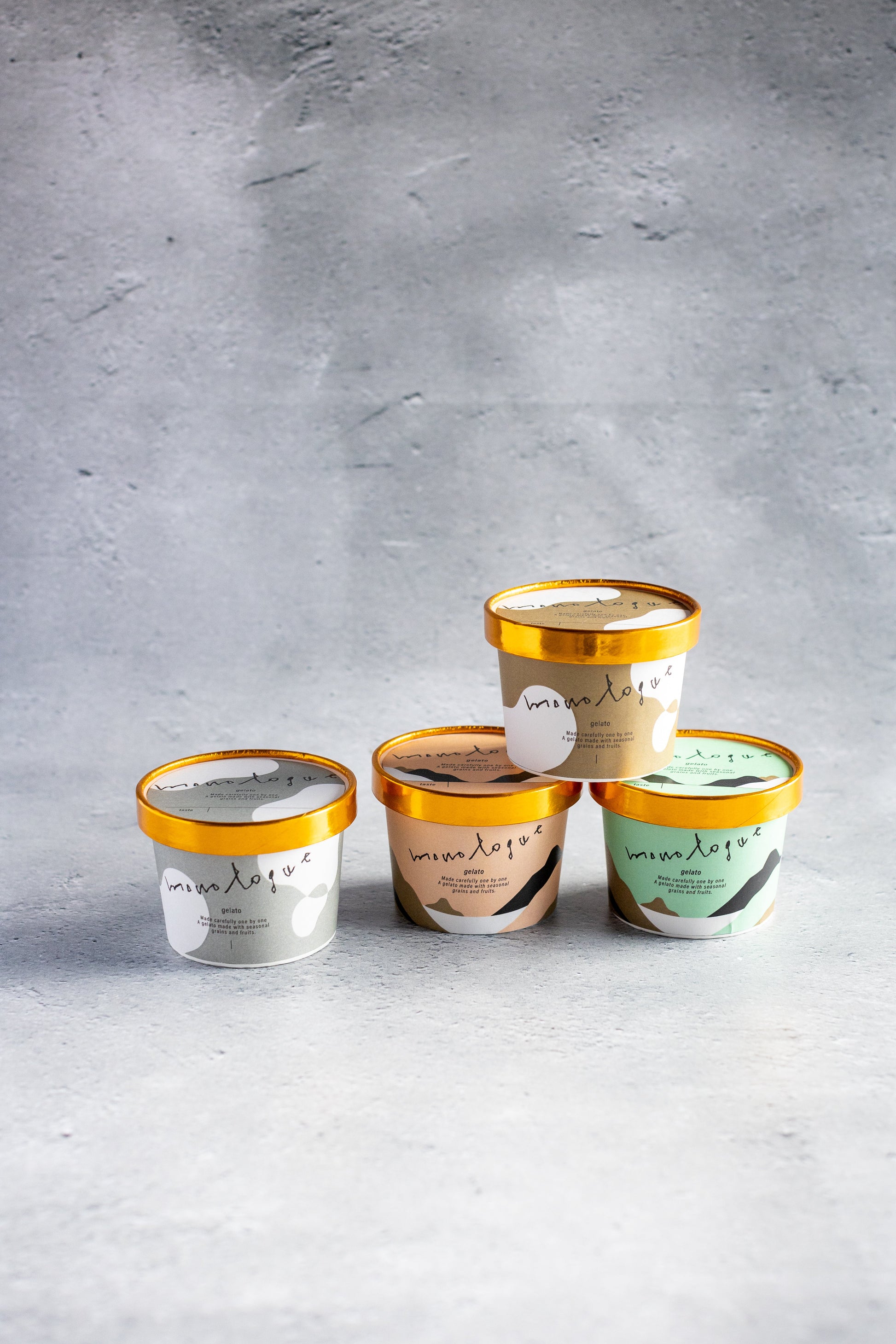 モノローグジェラートの中からこの冬のおすすめジェラート4種をセットにしてお届けします。モノローグオリジナルのギフトボックス、ラッピング、ギフトカード付き!