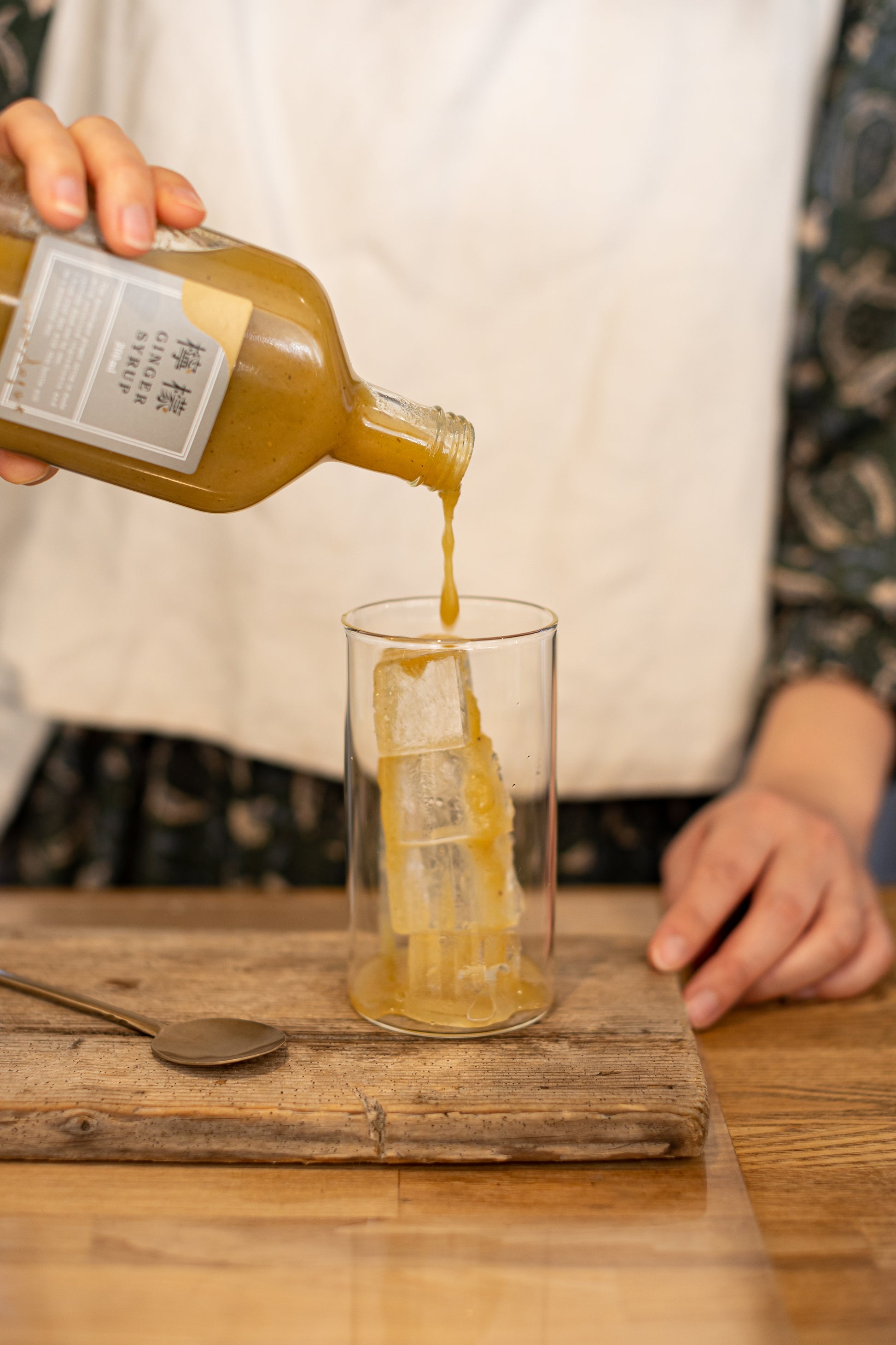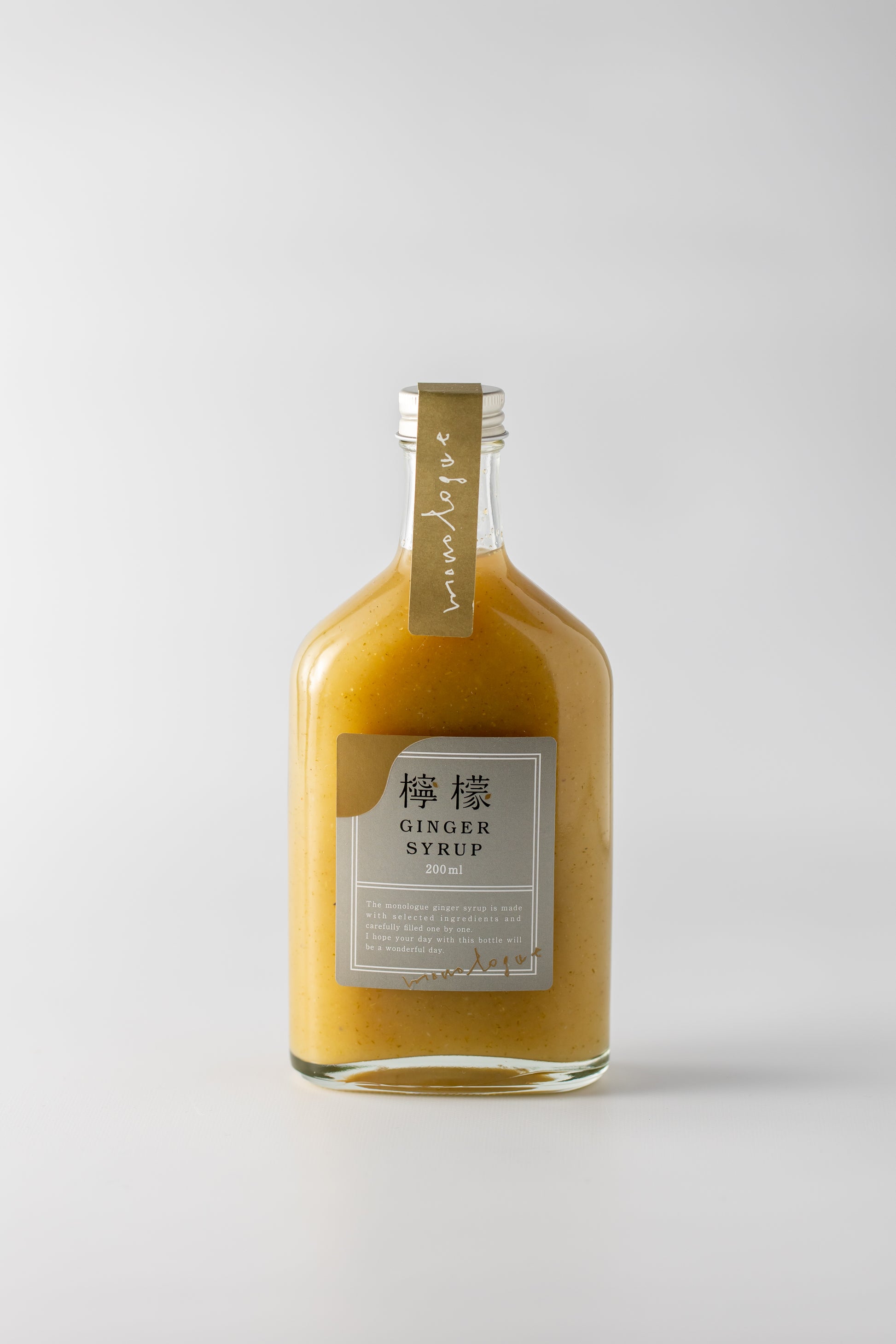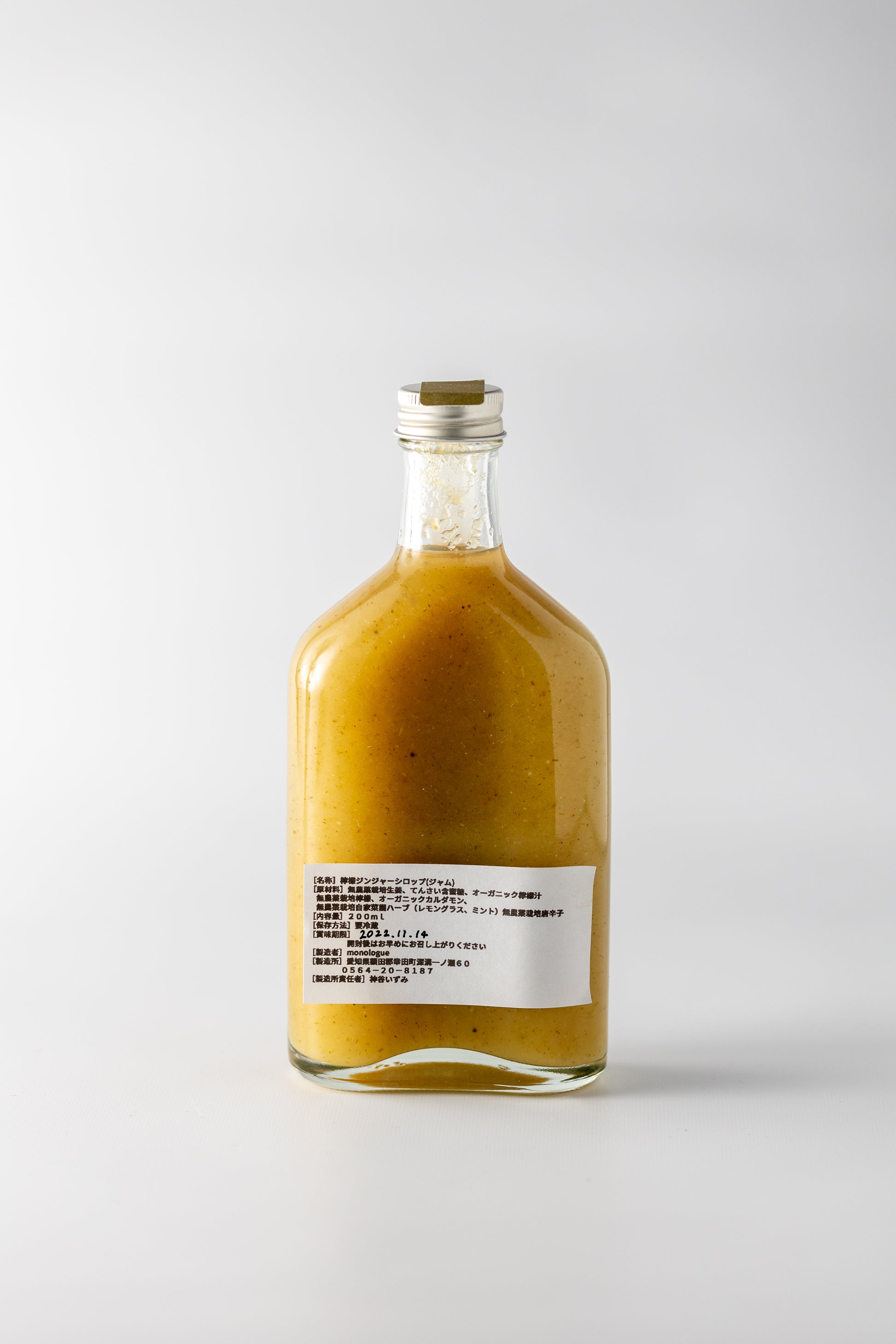 農薬を使わず自然のままに栽培された愛知県産の生姜とオリジナルに配合したスパイス、オーガニック檸檬を使い作った濃厚なモノローグ自家製のジンジャーシロップです。ソーダ割りやお湯割りで季節に関わらず通年お楽しみ頂きお飲み頂けます。